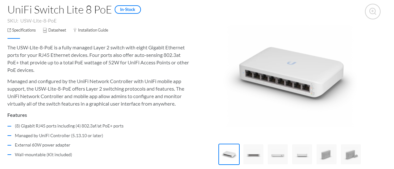 Right now I have an HP v1810-48g switch, and on this small desk in small space it takes up a laaaaaaaarge corner of the back of my desk (even though I have it caddy-corner standing up angled off the desk … don’t ask). This new switch will give me a smaller profile and I can save this HP for some other use.